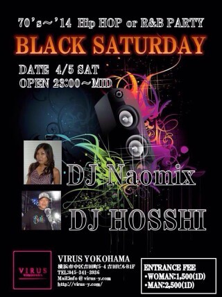 DJ NAOMIXと、DJ HOSSHIが、「BLACK SATURDAY」を盛り上げます。