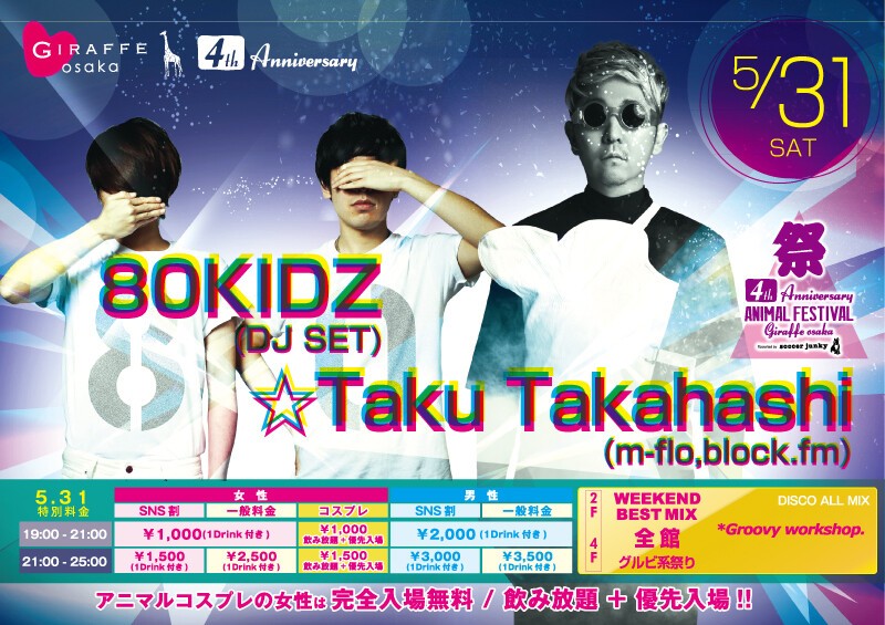 5/31(土)『SPECIAL GUEST : 80KIDZ(DJ SET) & ☆Taku Takahashi(m-flo,block.fm)』