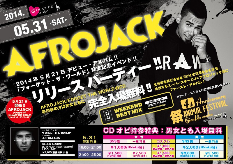5/31(土)『AFROJACK【FORGET THE WORLD】リリースパーティー』