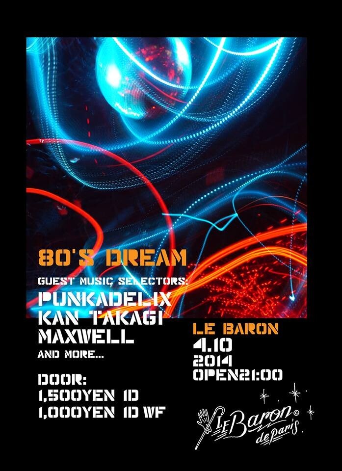 A-HAの「TAKE ON ME」、Whamiの「WAKE ME UP BEFORE GO-GO」、Cyndi Lauperの「GIRLS JUST WANNA HAVE FUN」など、80年代のヒットソングは当時それらの曲で踊った世代はもちろん、その世代を親に持つ若い世代にも今なお口ずさまれている。今夜はそんな80’sを中心に、ジャパニーズヒップホップの草創期を支えた高木完と、ミレニアムソングよりも80年代ヒッツをこよなく愛するアートディレクターのPUNKADELIXが懐かしの空間を再現する。金曜日に勝る花の木曜日がここにある。