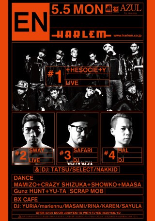 「en」=「中に入る」まさに言葉の意味にピッタリなおNEWなPARTYがGW最終日にHARLEMに登場!