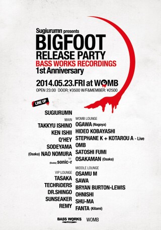 Sugiurumn が主宰する毎週水曜日リリースで話題を集めるレーベル BASS WORKS RECORDINGS が1周年を迎える。そしてレーベル初となるコンピレーションアルバムが4月にリリース!!そして Sugiurumn を筆頭に BASS WORKS RECORDINGS にて楽曲リリースやリミックス参加アーティスト達がパーティーに勢揃いし、アルバムリリースとレーベル設立1周年を記念してパーティーを開催。まさに現在のシーンを代表する国内アーティストが多数参加するスペシャルパーティー!!