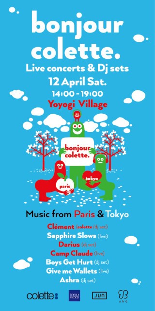bonjour recordsとパリを代表するセレクトショップcoletteが、フランスと日本の新しい才能を集めたコンピレーションアルバムをリリース。bonjour records、colette両バイヤーによる選曲に加え、アートワークはファニーな作風に定評のあるフランス人アーティストGeneviève Gaucklerが担当。桜の開花をイメージさせる、ニューカマーによるフレッシュ&クリーンな楽曲は国境を越えて必聴。4/12(土)、bonjour recordsとcoletteにて限定2000枚を発売します。 (デジタル版はcolette websiteとiTunesよりリリース。)