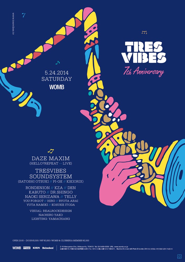今年のフジロックフェスティバルにも出演が決定した、SATOSHI OTSUKI、PI-GE、KIKIORIX、REALROCKDESIGNで構成されるTRESVIBESが7周年パーティを東京・神戸で開催決定。