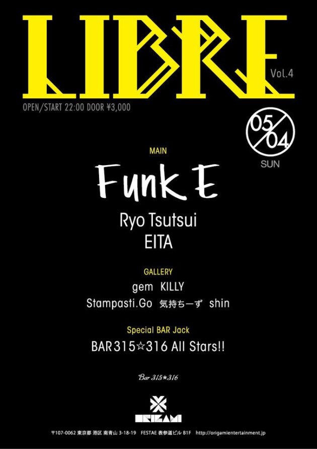 Ryo Tsutsui, the mastermind behind big name parties such as EDEN and Weekend Warriorz, will be hosting vol. 4 of his new signature event "LIBRE." This event will feature FUNK E a rising star of the Romanian dance music scene. FUNK E has been turning heads at home in Romania and around the world with residencies at the Zoo project in Ibiza as well as with the stylish Desolat and prestigious RAUM Music. Catch him only at Libre and experience the most exciting and progressive dance music of today. Don't miss this night.