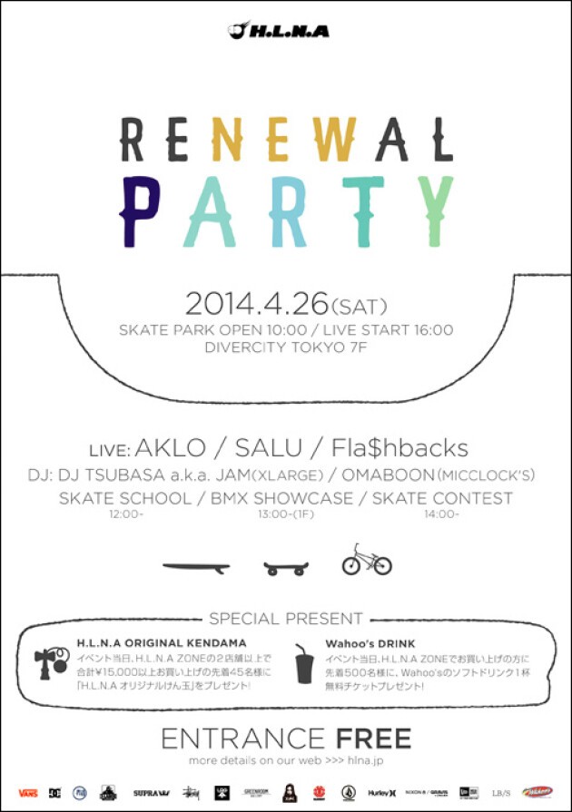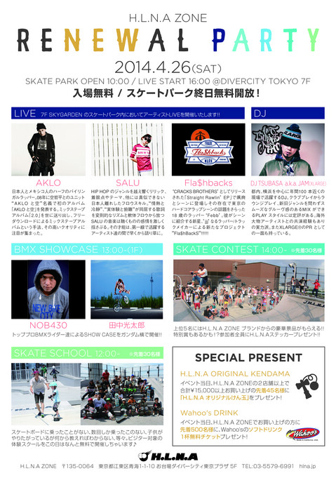H.L.N.A ZONEリニューアルOPENを記念してH.L.N.A SKYGARDENにてリニューアルを記念したEVENTが行われます!!