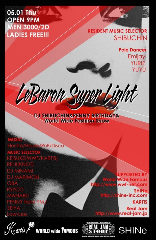 今夜はファッションと音楽のマリアージュ!Electro・House・RnB・Discoを中心としたダンスミュージックに合わせて、EMYJAY率いる4名のポールダンスショーや総勢6名の女子によるダンスチームBLACK RUDE ASSASSINSのライブパフォーマンスなど、盛りだくさんのコンテンツ!アッパーでアフロディズィアックな夜になること間違い無し!さらにはWorld Wide Famousのファッションショーに加え、SHIBUCHINとPENNY from YMJのBirthday Bashも同夜開催。踊って祝って美を賞でる豪華絢爛な一夜を皮切りに、スペシャルなゴールデンウィークをキックオフ!