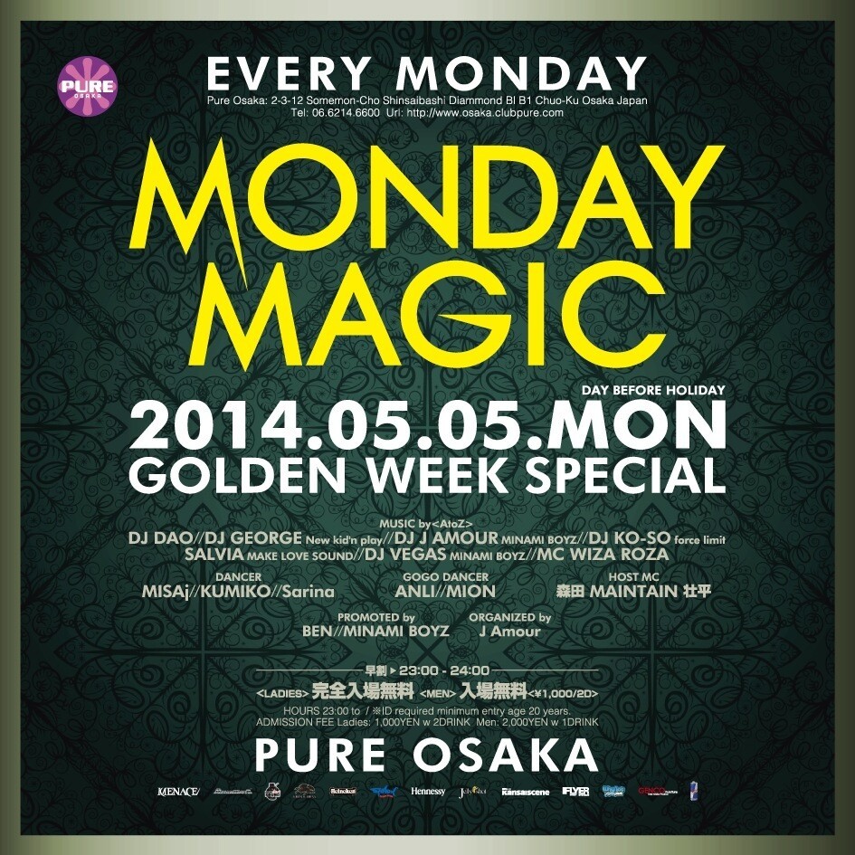 毎週月曜開催のNEW PARTY MONDAY MAGIC!!!
