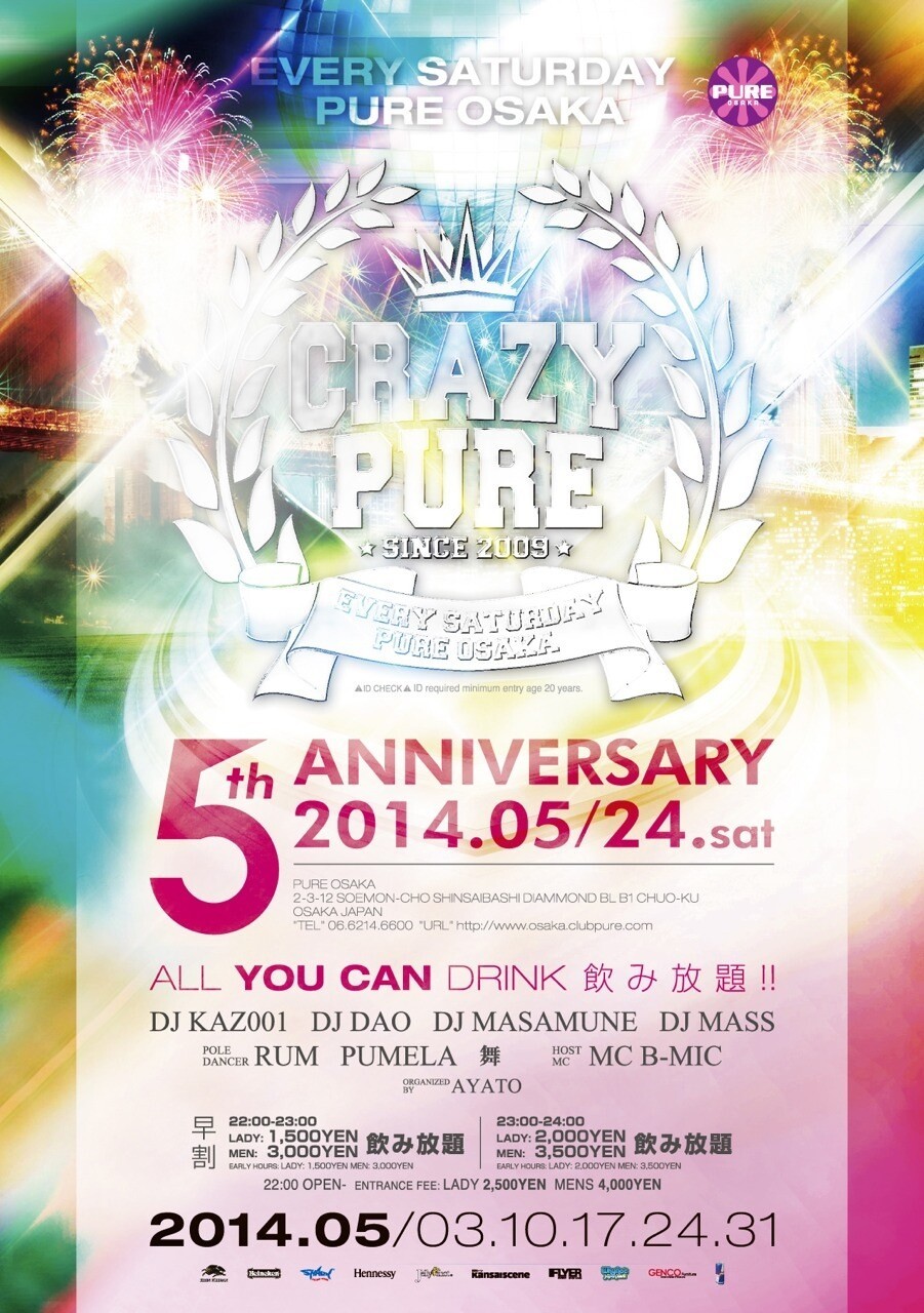 毎週土曜PURE OSAKAで盛り上がりを見せる人気パーティCRAZY PURE!!