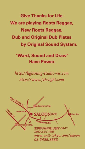 毎月第一日曜の夕方、ここ代官山SALOONを低音で揺るがす *Jah-Light Sound System*。