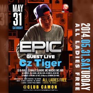 【毎週土曜EPIC】5/31(土)☆今夜はGUESTにCz Tigerが登場!!!!土曜カモンは毎週満員御礼の鉄板ビッグパーティー『EPIC』★★関西を代表する豪華DJ陣が毎週ローテーションで登場☆ジャンルはHIP HOP, R&B, REGGAE, EDMなど幅広い選曲でお届け☆土曜でも女性は安心の終日入場無料なので是非お洒落して遊びに来て下さい★★