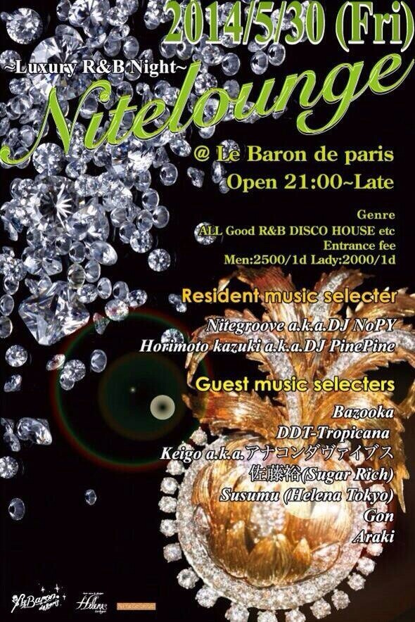 超豪華ゲストとともに人気DJ NITEGROOVE aka DJ NOPYがお贈りするLe Baron de ParisのR&BレギュラーパーティーNITELOUNGE。「大人の遊び+MID R&B」をコンセプトに、一週間分のナイトアウトを総仕上げ。夜遊びの究極はここにある!