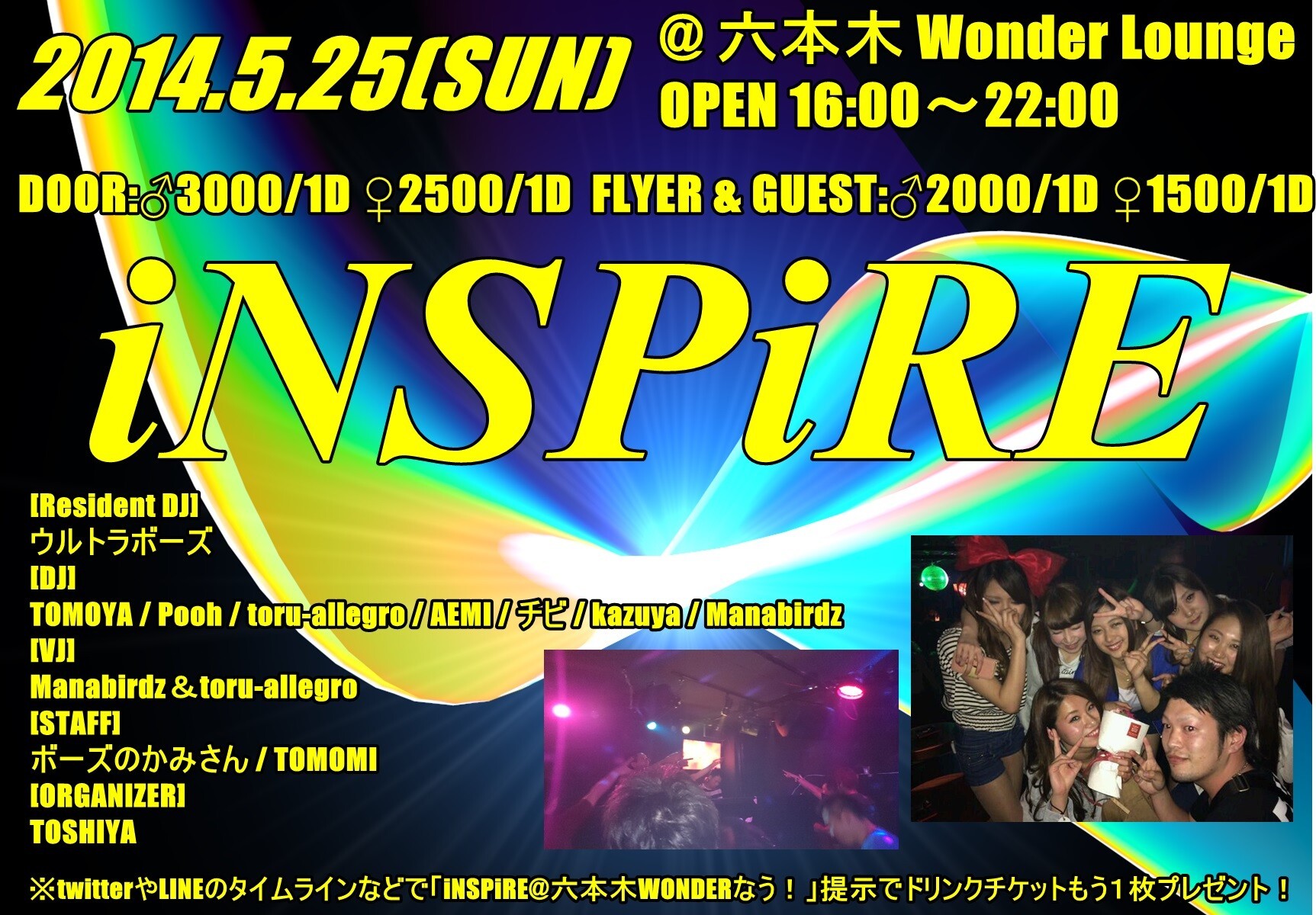 ※twitterやLINEのタイムラインなどで「iNSPiRE@六本木WONDERなう!」提示でドリンクチケットもう1枚プレゼント!