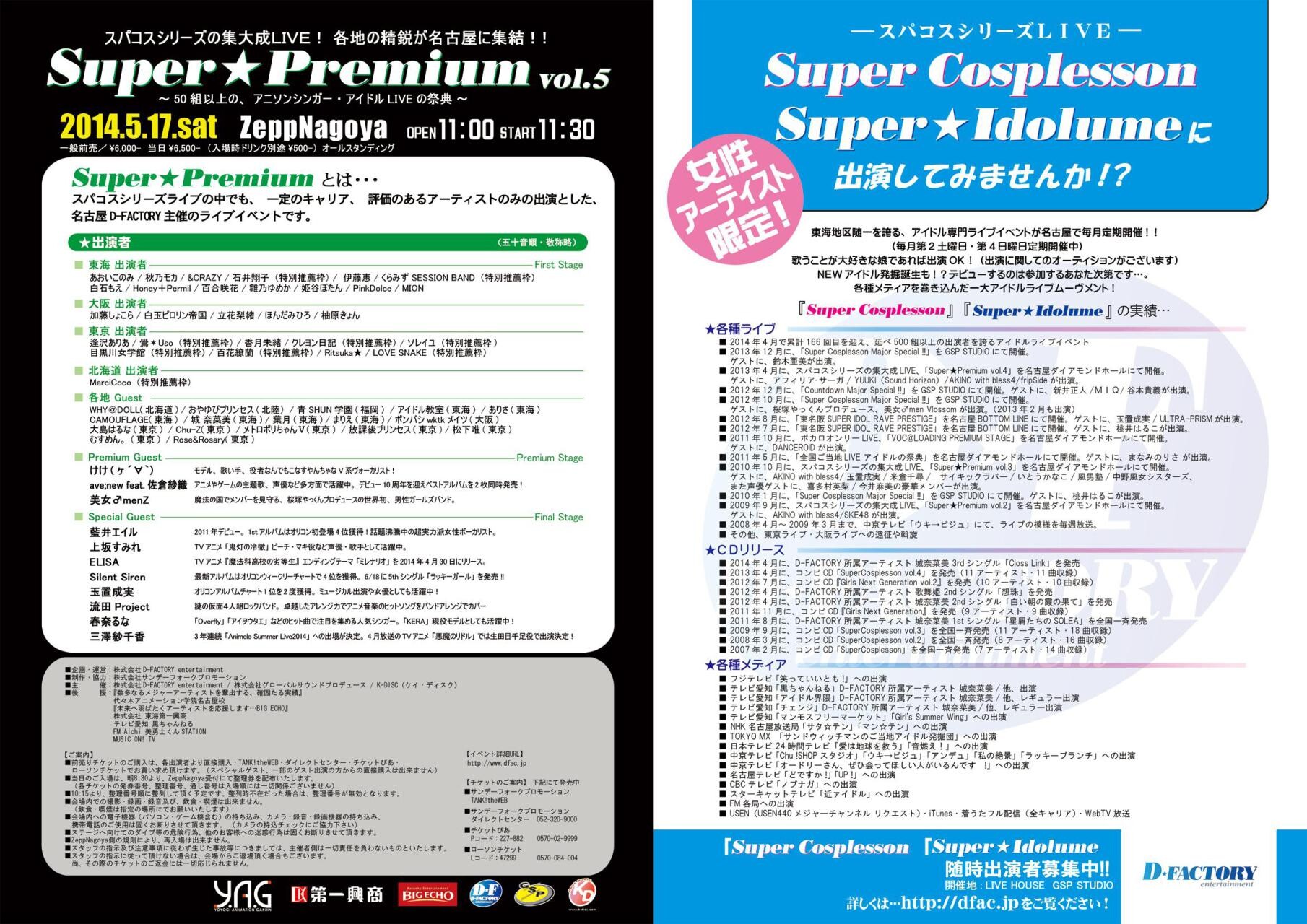 2014年5月17日(土)にZepp Nagoyaにてアニソン&アイドルライブイベント<Super★Premium vol.5>が開催される。