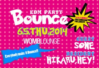 The new party from WOMB LOUNGE, "Bounce!!!" The word Bounce, meaning to leap, is now a standard term in EDM. With Hardwell, Alesso, Avicii, Afrojack, TJR and others leading the storm, this is a furiously hot party shining the spotlight on EDM! Come together now and turn up the weeknight with the most pumping music and the best of drinks!!! Free entrance for the ladies!