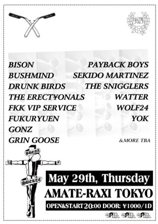 DJ: BISON, BUSHMIND, FKK VIP SERVICE, FUKURYUEN, GONZ, GRINGOOSE, SEKID MARTINEZ, THE SNIGGLERS, WATTER, WOLF24, YOK, and more