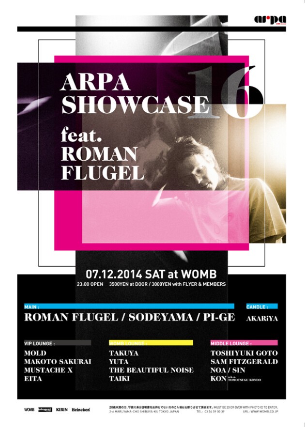 第16回目を迎える SODEYAMA 主宰の"ARPA SHOWCASE"が開催!! 今までにハウス、テクノを問わず様々なアーティストを招き、飽和されていくパーティーとはひと味違った内容とクオリティーで確固たるポジションを確立している。