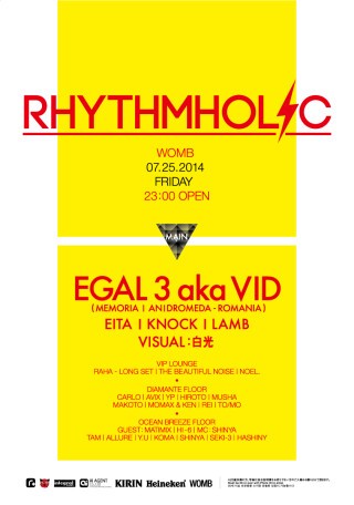 5月の開催においてはゲストの Anja Schneider のパーフェクトなプレイでフロアを盛大に盛り上げた記憶もまだ新しい。そして真夏の WOMB を沸点に到達させるべく今回のゲストは1992年生まれという驚愕の若さで既にヨーロッパのミニマルハウスシーンを担う存在になりうる若き天才アーティスト EGAL3 a.k.a VID の待望の出演が決定した。彼は、2つの名義を使い分け、Egal3 名義としては既に Edec や Fear of Flying、Monique Musique、Memoria Recordings といった今や大注目のレーベルからリリースを果たしている一方で、VID 名義では Egal3 とは違うより音数を少なくしたダビーでディープなプロダクションを展開している。今まさに乗りに乗っている EGAL 3 a.k.a VID の貴重な来日公演。ミュージックシーンの最前線を体感できるまたとない一夜となるだろう。