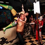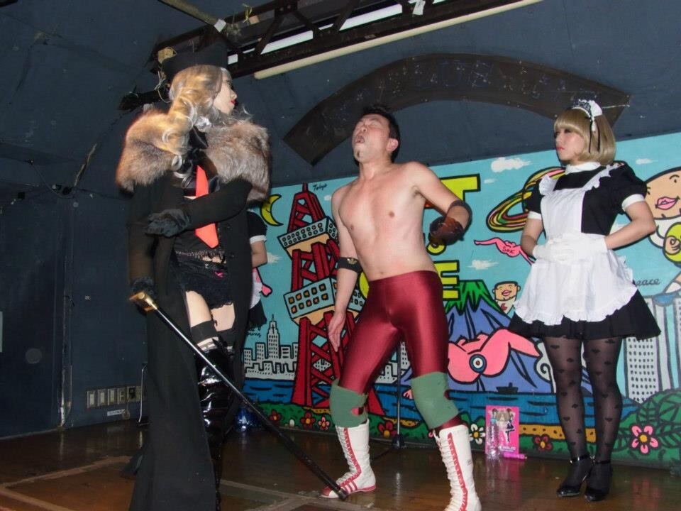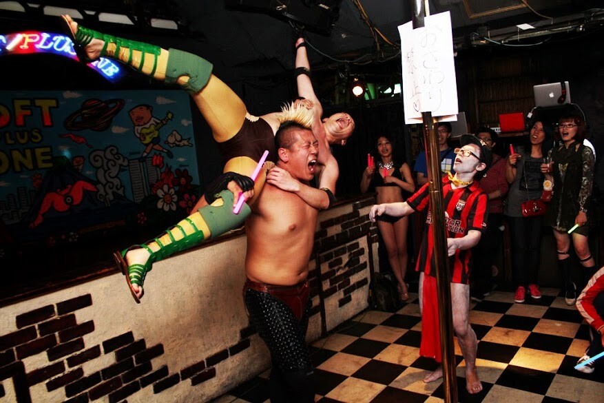 お色気出し物やDJ、世界の珍プロレス映像ショーなど
