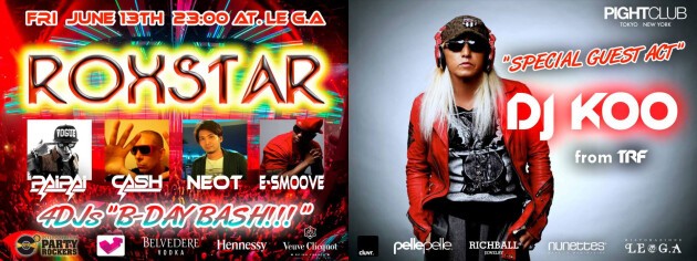 今回は【ROXSTAR】RESIDENTの"PAIPAI" & "CASH"に加え「LE G.A」RESIDENTのNEOT(Tetsuro Mikami) & "INTERNATIONAL PARTY ROCKERS" E-SMOOVEの"4" BIG DJ's ★B-DAY SPECIAL★