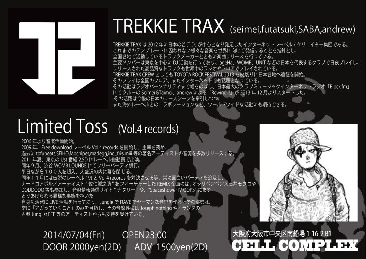 大阪からも「Vol.4 Records」主宰する関西最強ジャングリストLimited Tossが参戦!!