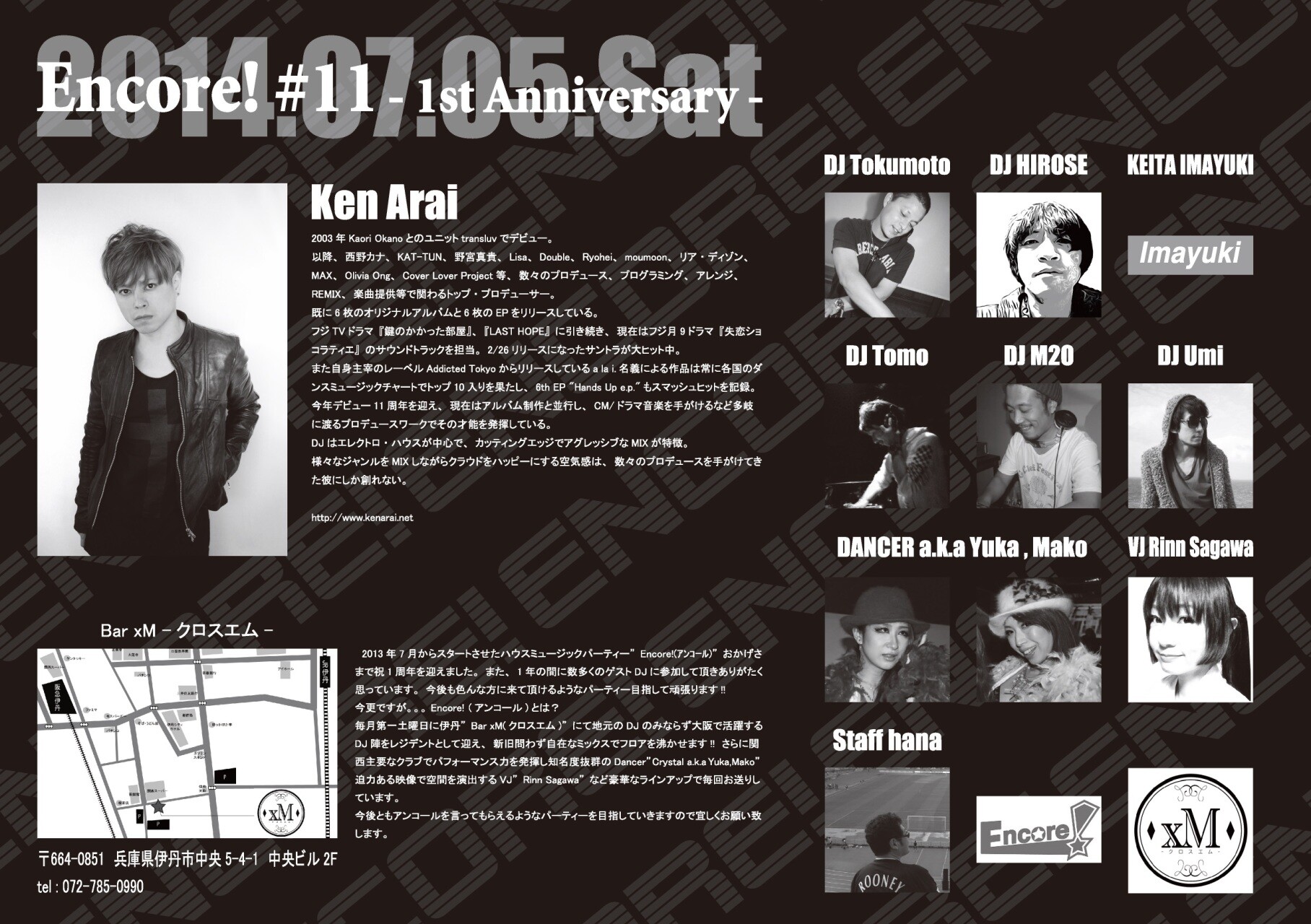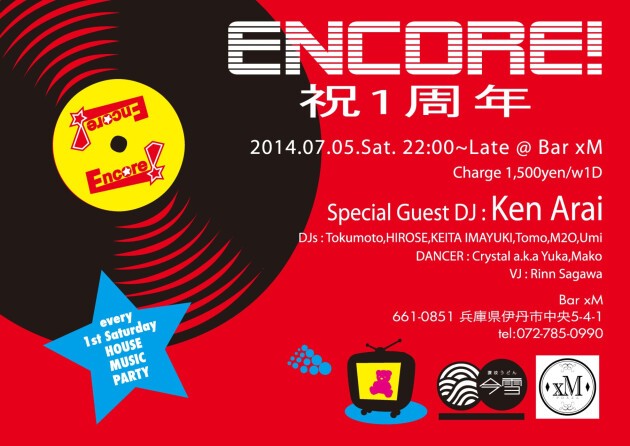 2013年7月からスタートさせたハウスミュージックパーティー”Encore!(アンコール)”おかげさまで祝1周年を迎えました。