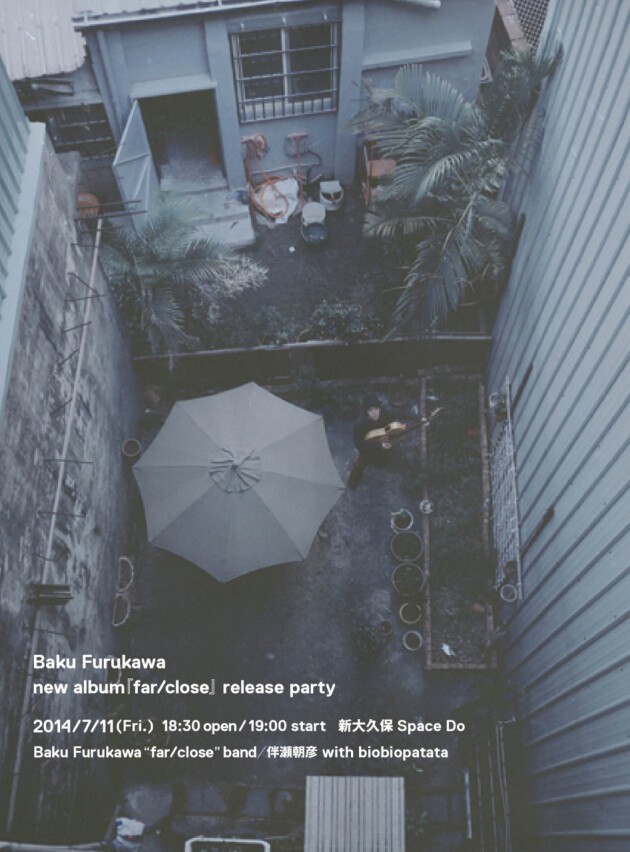 リリースパーティーでは、レコーディングメンバー+ゲストミュージシャンを入れた特別編成、Baku Furukawa "far/close" band、そして共演には同じく待望のソロアルバムを4月に発売した伴瀬朝彦と遠藤里美率いるbiobiopatataとの豪華編成での演奏を予定!!
