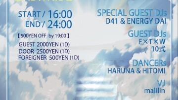 * 本PARTYはゴミ0イベントです。ゴミ軽減の為、ドリンクやフード類の持ち込み禁止とさせて頂きます。会場内に十分なドリンクやフード等のホスピタリティーがございますのでご了承ください。