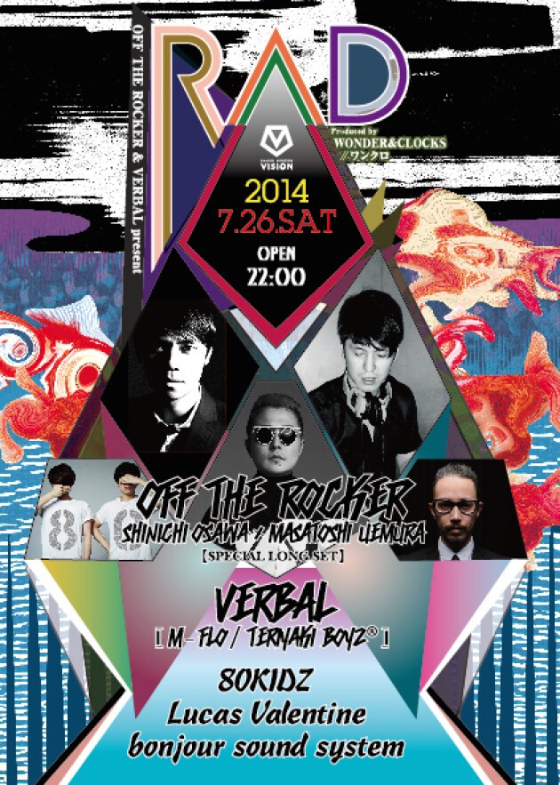 大沢伸一と上村真俊によるDJユニット、OFF THE ROCKER。そしてm-floの最新アルバム「FUTURE IS WOW」をリリースしたばかりの21世紀型マルチ・アーティスト、VERBAL。この両者によるイベント『RAD』が、早くも次なる開催を迎える。