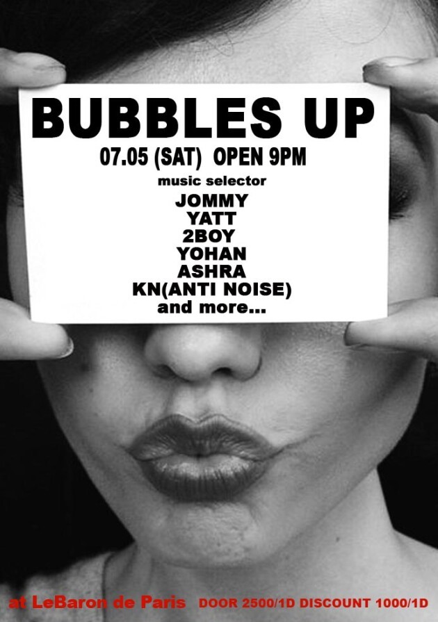 新進気鋭DJでともにデザイナーとして強烈な美形でその名を馳せる2BOY。エレクトロからB-MOREまでオールジャンルのユニークなミックスプレイが定評のJOMMY、そしてダンスと音楽と最上級のエロティシズムで表現するパフォーマーのYOHANなど、今夜は個々に強烈な個性を放つ異彩なメンツが集結!BUBBLE UPな夜をお見逃しなく!
