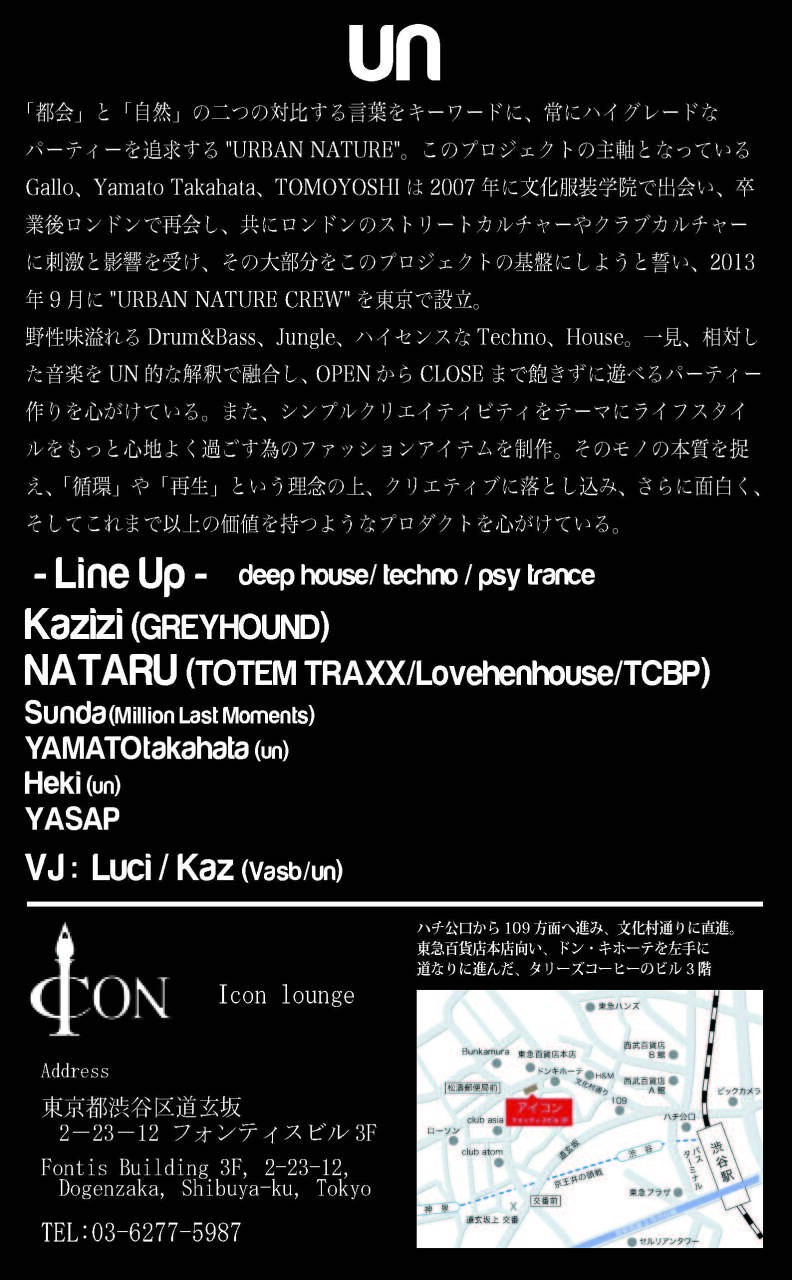 「都会」と「自然」の二つの対比する言葉をキーワードに、常にハイグレードなパーティーを追求する"URBAN NATURE"。このプロジェクトの主軸となっているGallo、Yamato Takahata、TOMOYOSHIは2007年に文化服装学院で出会い、卒業後ロンドンで再開し、共にロンドンのストリートカルチャーやクラブカルチャーに刺激と影響を受け、その大部分をこのプロジェクトの基盤にしようと誓い、2013年9月に"URBAN NATURE CREW"を東京で設立。