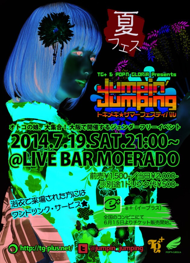 ・当イベントはLIVEにパーティをミックスした新感覚のパーティ・イベントです。 ・コスプレ等で参加されるとより楽しめる内容となっております。 ・出演者及び、主催の事情によりプログラムの変更や中止の可能性も御座います。 【参加資格】 ・20歳以上の方で、女装さんやニューハーフさんに理解のある男性や女性の方。※明からに20歳未満と思われる方は身分証明書の提示を御願いする場合が御座います。 【参加頂けない方】 ・過去に他イベントやお店で係争、紛争又はそれに準ずる行為をされた方、又それを目的して入場される方及びイベントに参加する目的以外で参加の方。 ※イベントにまつわる全てのトラブルについて、主催者・店舗は一切の責任を負いません。 【チケットについて】 ・チケットはローソン、チケットぴあ、e+及び協賛店にて販売しております。 ・チケットはドリンク代を含んでいません。別途500円を受付にてお支払い下さい。 ・チケットは再発行できませんので紛失、破損にご注意下さい。 ・不測の事態によりイベントの中止以外のいかなる場合も払い戻しは致しません。 ・チケットに関しての転売等による不正な取引による全てのトラブルについて、主催者・店舗は一切の責任を負いません。 【写真撮影について】 ・イベントにおけるプライバシー保護のため、許可なき撮影を禁止致します、当事者間で了承の上撮影された場合でも第三者の映り込みには十分に注意してください。 ・写真・ビデオ撮影にまつわるトラブルについて、主催者・店舗は一切の責任を負いません。 ・演目の際の舞台上の撮影を禁止します。プロの方の出演も予定しています。絶対に舞台上の撮影はしないでください。 ・イベント遂行上やむなき場合はご退場や持ち込まれた機材の没収も御座います。 ・許可なき撮影やプライバシーの保護が出来ないと判断した場合、フィルムや記憶媒体の没収も御座います。 ・撮影した写真・ビデオを勝手にネット上に及びメディアに掲載等する事を禁止します。 メディア掲載及びネット掲載にまつわるトラブルについて、主催者・店舗は一切の責任を負いません。 【お着替えについて】 ・会場にはお着替えスペースは御座いません。会場のご好意で簡易な御着替えに使うスペースはあります。 ・会場での衣装については法令遵守で御願いします。陰部の露出や明らかに他人の気分を害する様な衣装は禁止します。 ・簡易御着替えスペースは男女共用となります。ご了承下さい。 ※共用スペースでのお着替えが困難な方はご利用できません。 ・荷物の預かりサービスは御座いません ・会場内を汚損、汚す行為や禁止します。洗髪、調髪(ウイッグの調髪も含む)を禁止します。 ・銃刀法に違反するものの持ち込みや危険物の持ち込みを禁止します。※コスプレによるものであっても他人に脅威となるものの持ち込みの全てを禁止します。 ・日本国内における実在する公的機関の衣装すべての着用を禁止します。 【再入場について】 ・再入場禁止となっております。ご了承下さい。 【迷惑行為等について】 ・違法行為、及び他人に迷惑をかける暴力、暴言等の威圧行為をされる方は即退場頂きます。 ・禁止薬物及び合法ドラッグ等の持ち込みを禁止します。見つけ次第通報致します。 【その他】 ・お車でのお越しのドライバーの参加者への酒類の販売をお断りさせて頂きます。 ・貴重品はクロークサービスを必ず利用下さい。盗難、紛失につきましては、主催者・店舗は一切の責任を負いかねます。 ・飲食物全ての持ち込みを禁止します。 ・会場内で発生したトラブル又は事故につきまして、主催者・店舗は一切の責任を負いません。