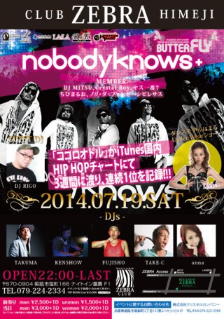 【nobodyknows+】2014/7/19(土)ZEBRA PRESENTS nobodyknows+ LIVE @姫路CLUB ZEBRA