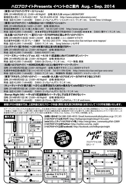 日時:2014年8月2日(土)23:00~All Night!!