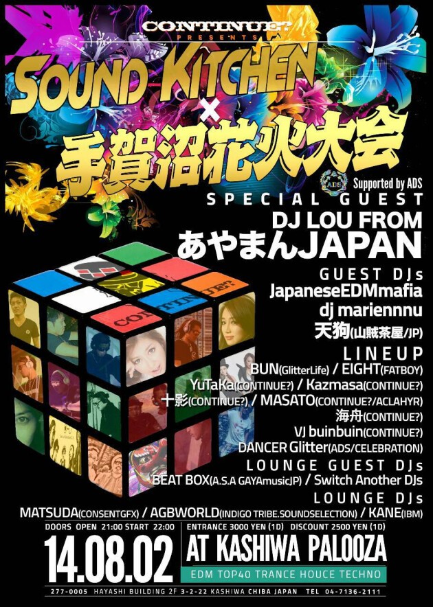 年間延べ2000人以上のパーティクラウドを魅了し続けるCONTINUE?が8月2日手賀沼花火大会アフターパーティとして、柏PALOOZAにて開催!!!
