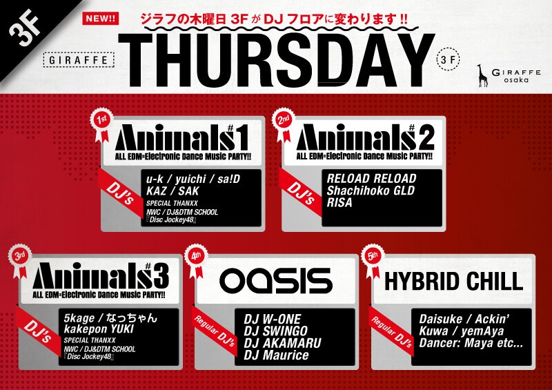 第1、第2、第3木曜開催Animals!!