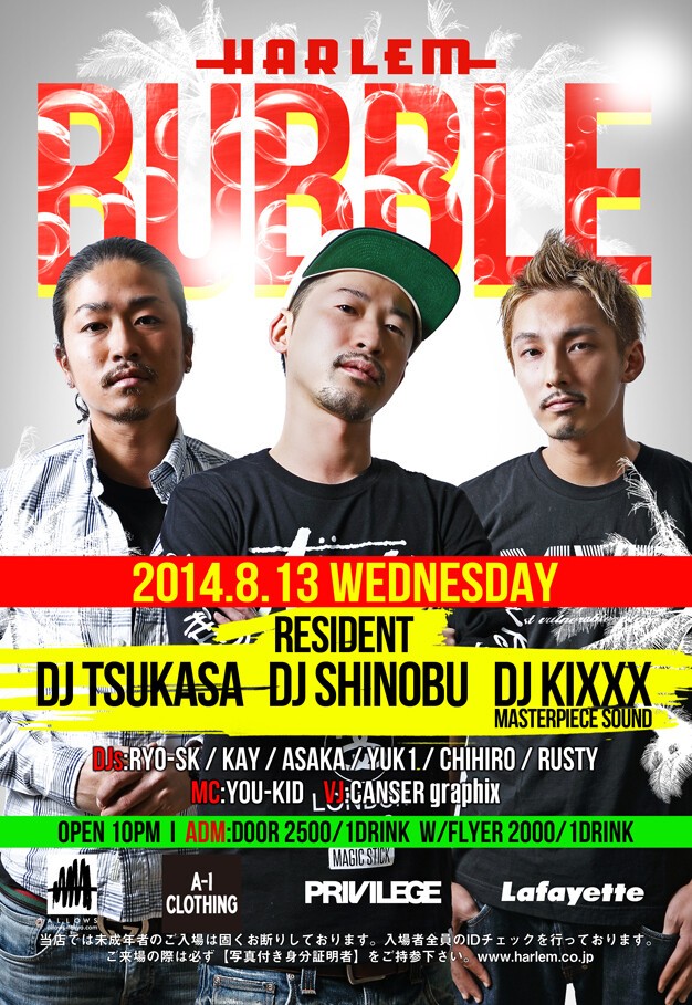 ResidentにはSHINOBU, TSUKASA, KIXXX(MASTRPIECE SOUND)がスタンバイ!