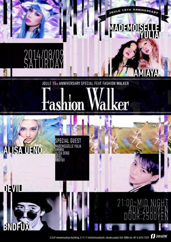 過去にFullbloom,triangleと熱狂の渦に巻き込んで来た【Fashion Walker】が8/9(土)大阪アメリカ村のJOULE15周年PARTYでの開催が決定!