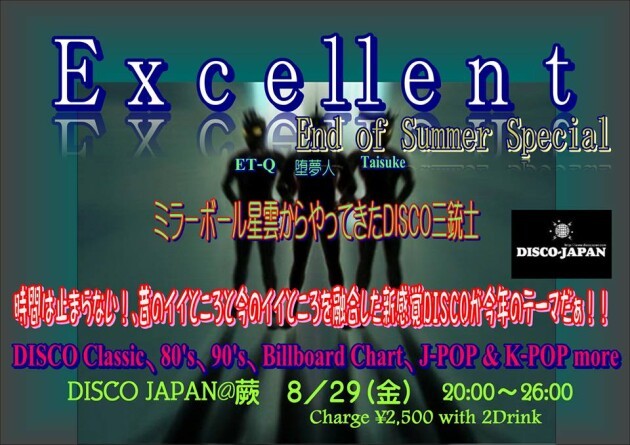 久々にあのExcellentがHomeplaceのDISCO JAPAN@蕨に戻ってきます。素敵な夏の思い出を持って、そして終わりの無き夏の為に