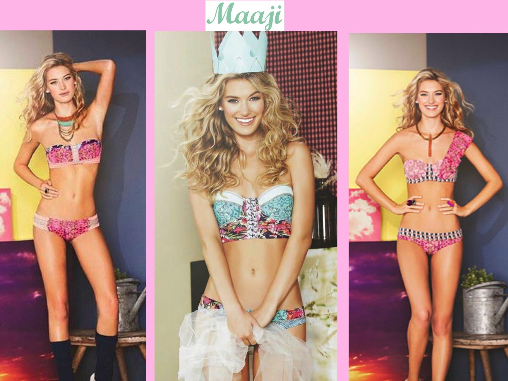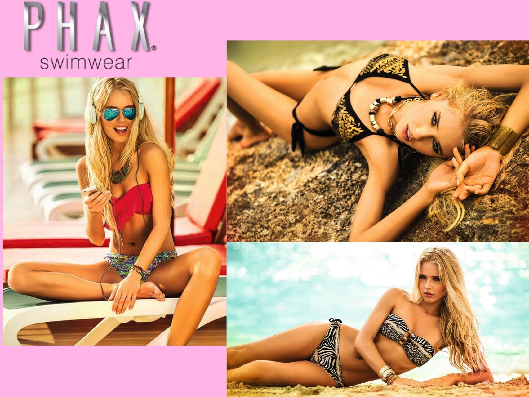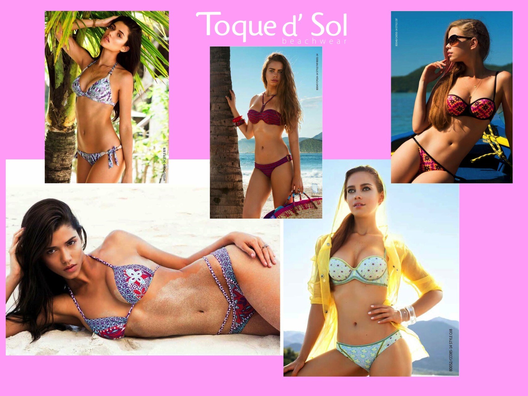 A fashion show features 6 models wearing colorful and sexy bikinis of Brazil and Columbia such as Toque d'Sol, Maaji and Phax.