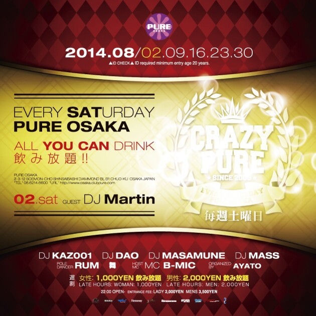 毎週土曜PURE OSAKAで盛り上がりを見せる人気パーティCRAZY PURE!!