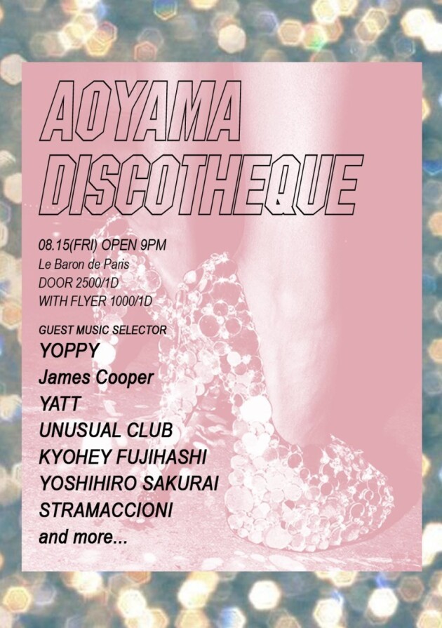 Le Baron de Parisお馴染み、ディスコをテーマにファンキーで大人な空間を演出するAOYAMA DISCOTHEQUE!ストリートやファッションカルチャーシーンの第一線を牽引するクリエイター達が、ここLe Baron de Parisを舞台にディスコティックな空間を繰り広げます。ディスコ、ファンク、ヒップホップ、ハウスを織り交ぜたAOYAMA DISCOTHEQUEをご堪能ください!