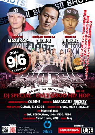 KING OF CB DJ MASAKAZ、HEAVY HITTERS DJ NUCKY、INFRONT RECORD DJ OLDE-Eを軸にSHOTS CREWでヤバい1日を作ります。こんな最高の夜は朝になって欲しくない!待ってます!