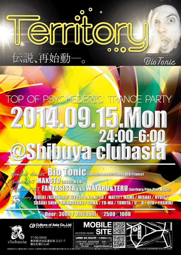 PSYCHEDERIC TRANCEシーンを長年最前線で牽引し、動員数、招聘アーティスト、BIG PARTY PRODUCE等、数々の伝説を残してきた【Territory】!