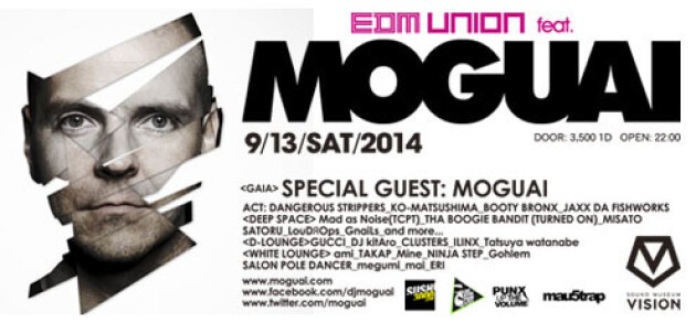 この日”EDM UNION”に大きな激震が走る。「世界NO.1クラブヒットトラックメイカー」、「世界中のフェス、イベントへのヘッドライナーとして出演」、「二度のプラチナム・アワードの受賞」と世界規模で、数多くの賞賛を受ける現代のエレクトリックミュージックの象徴ともいえる存在”MOGUAI”の出演が決定した。Moby、Afrojack、Britney Spears、Underworld、Beyonce等世界中のトップアーティスト達との制作活動もさることながら、現場でファンを魅了するDJ/LIVE セットは世界規模でその地位を確立、絶大な評価を多方面から受けている。この夜”EDM UNION”は過去最大級の盛り上がりは必至であろう。