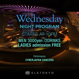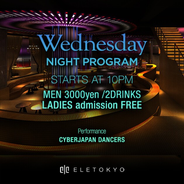 世界中のパーティーシーンを席巻しているダンスミュージックを中心にした選曲と、世界で活躍するパフォーマンス集団 CYBERJAPAN DANCERS が彩る贅沢な平日の夜をお楽しみいただけます。