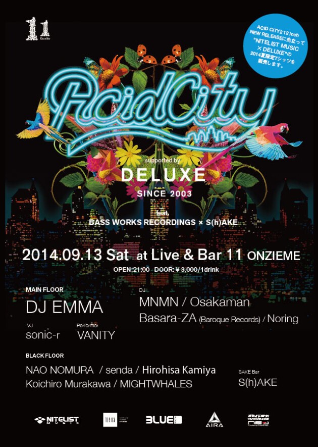 "ACID CITY2" 12 inch NEW RELEASEに先立って "NITELIST MUSIC × DELUXE"の2014夏限定Tシャツを販売します。