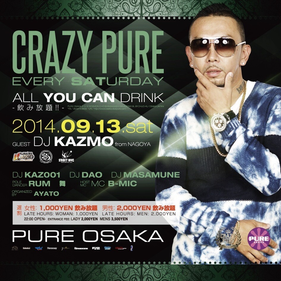 毎週土曜PURE OSAKAで盛り上がりを見せる人気パーティCRAZY PURE!!