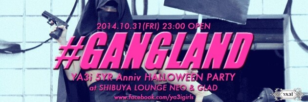 そんな3人組『 YA3i 』が、2009年より都内にて開催を始めたハロウィンパーティーも今年で5回目となりました。今年は【#GANGLAND】という名のもと、テーマに「ワル」を掲げ、渋谷のLOUNGE NEO & Glad の二会場をThugくてワル〜いGANGのアジトに仕立てあげます!