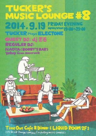 TUCKERのしっとりエレクトーン演奏と彼が招くゲストによるDJプレイをバックに、ゆったりと語らい飲食を楽しむ金曜の夕べ。今回のゲストはdj置石!